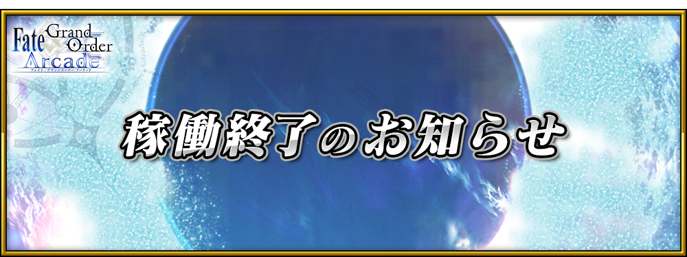 稼働終了まで『Fate/Grand Order Arcade』を引き続きお楽しみいただけますと幸いです。
